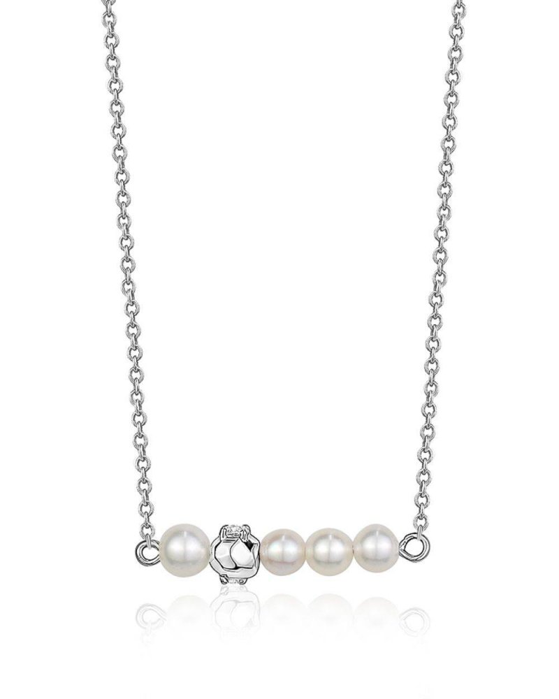 Collier avec 4 perles d'eau douce de 4mm chacune ainsi qu'une petite boule avec 2 cubiques zircons avec chaîne en argent sterling rhodiée