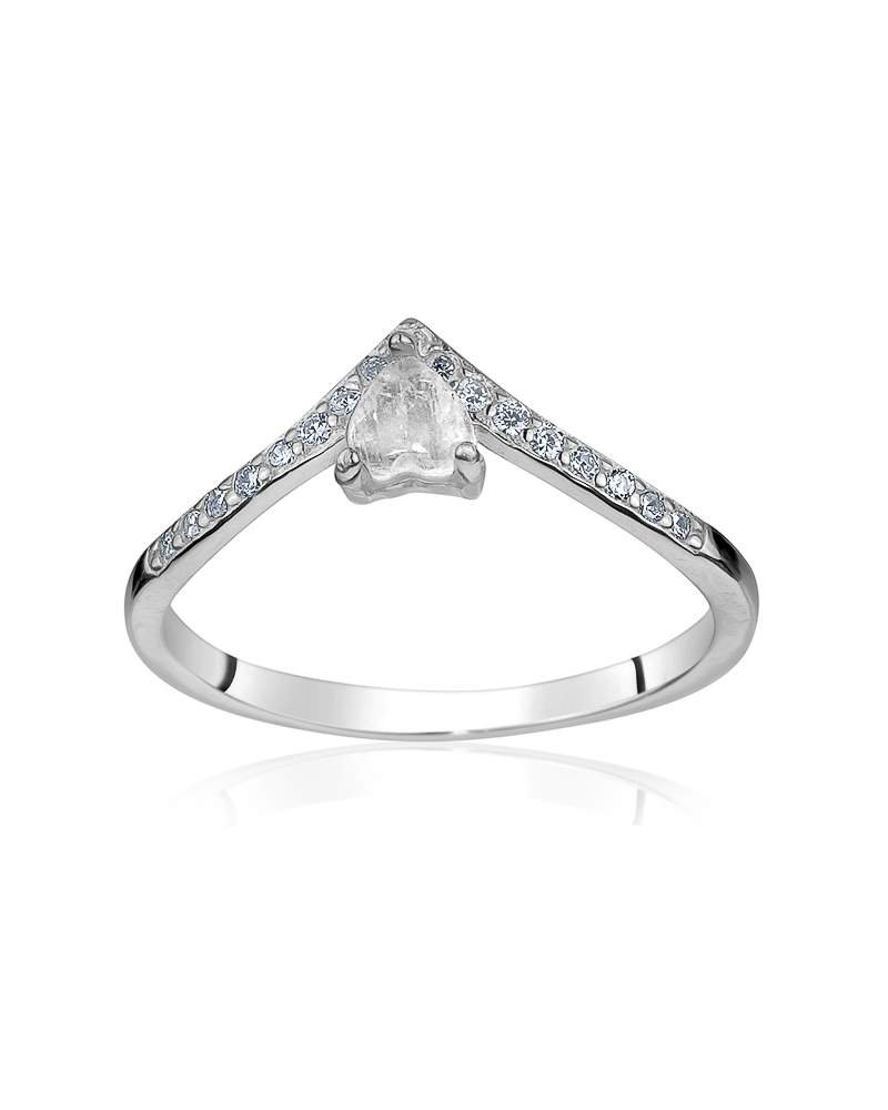 Bague en V en argent sterling rhodié avec pierre de lune en forme de coeur