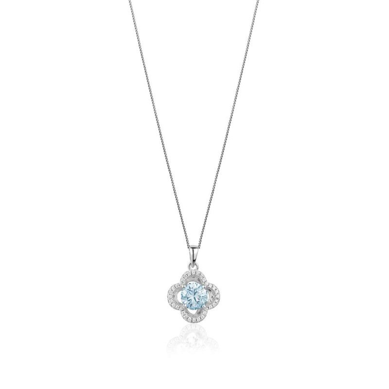 Un pendentif intemporel au charme français. Une pierre centrale ronde taille brillant, sertie de griffes, est mise en valeur par un entourage pavé en motif trèfle à quatre feuilles. Suspendu à une chaîne forçat délicate, il capte la lumière avec élégance tout en restant facile à porter au quotidien.