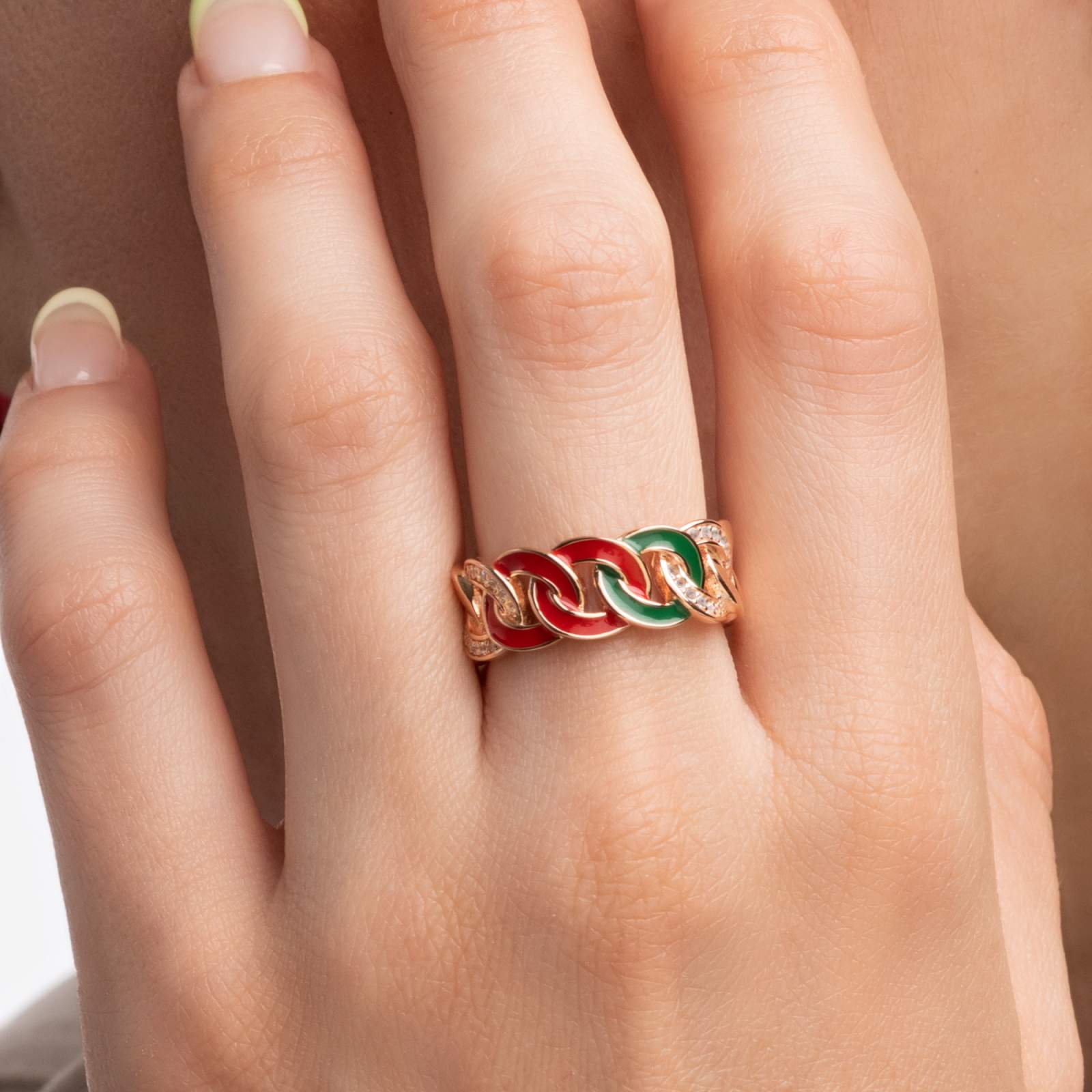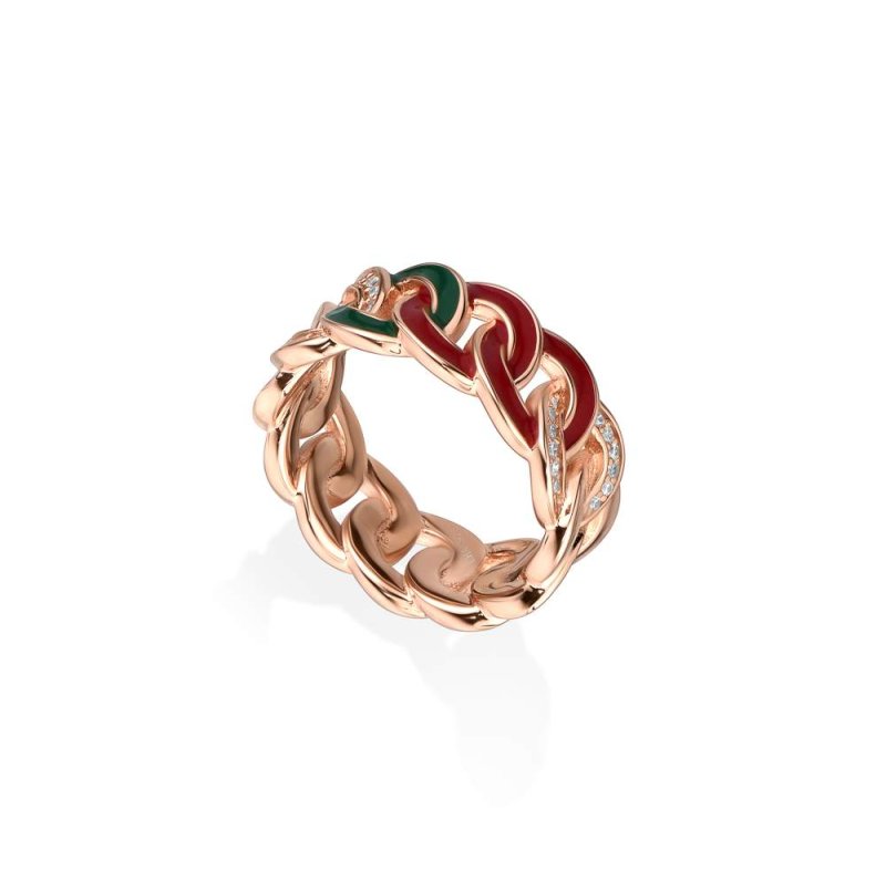 La bague Granada offre une silhouette moderne et texturée, composée de maillons entrelacés en émail rouge et vert. Fabriquée en argent plaqué or rose, elle est magnifiée par un pavé de zircon cubique qui lui apporte éclat et sophistication. Confortable et remarquable, elle se porte seule ou en duo avec les boucles d’oreilles Granada.