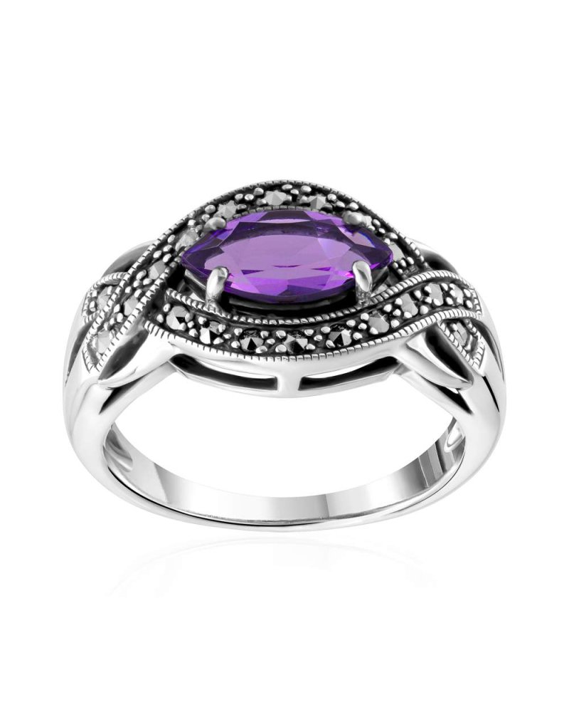 Bague en argent sterling serties de marcassites et d'une améthyste à facettes