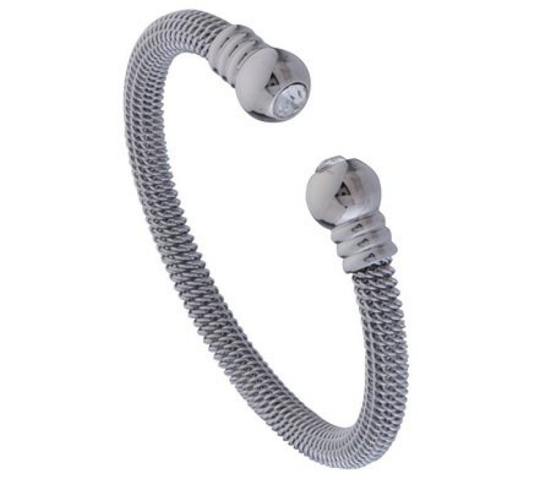 Bracelet classique en fil d'acier inoxydable avec des cristaux clairs.