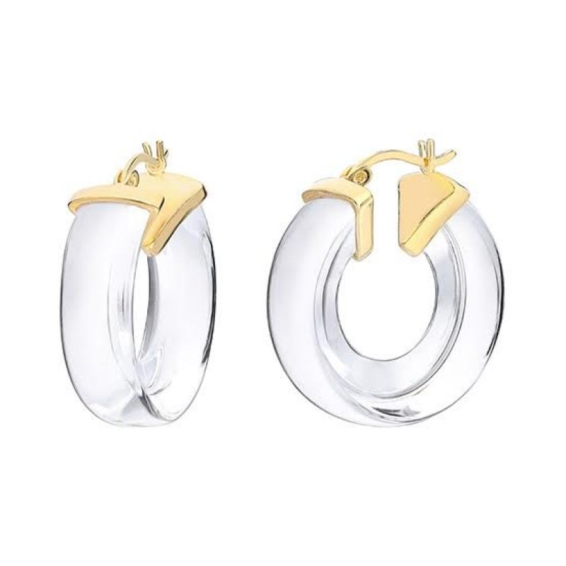 La lucite est une résine acrylique thermoplastique utilisée comme substitut du verre. Toutes les boucles d'oreilles sont sur argent plaqué or.