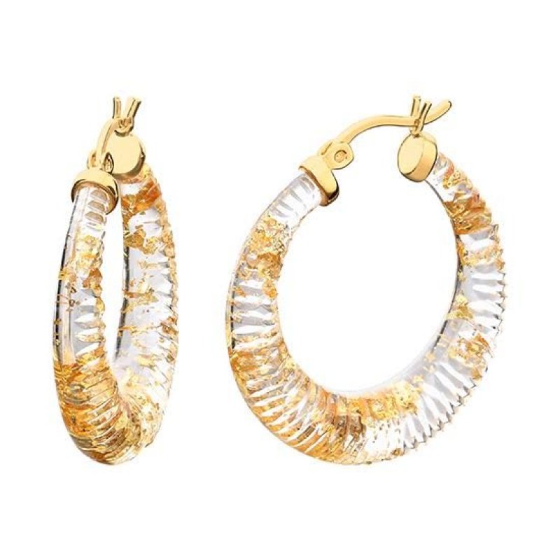 La lucite est une résine acrylique thermoplastique utilisée comme substitut du verre. Toutes les boucles d'oreilles sont sur argent plaqué or.