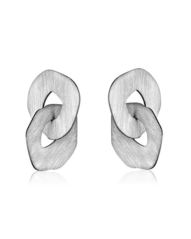 Boucles d'oreilles en argent plaqué rhodium avec finition mate brossé.