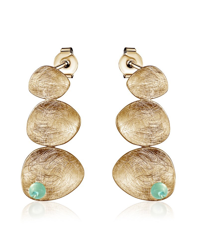 Boucles d'oreilles en argent plaqué or avec finition mate brossé avec bille teinte en verre.