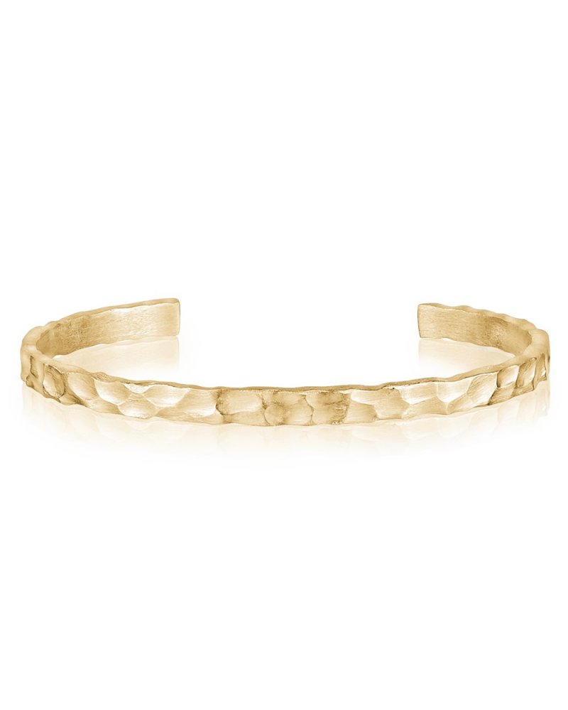 Bracelet en argent plaqué or avec finition mate martelé brossé.