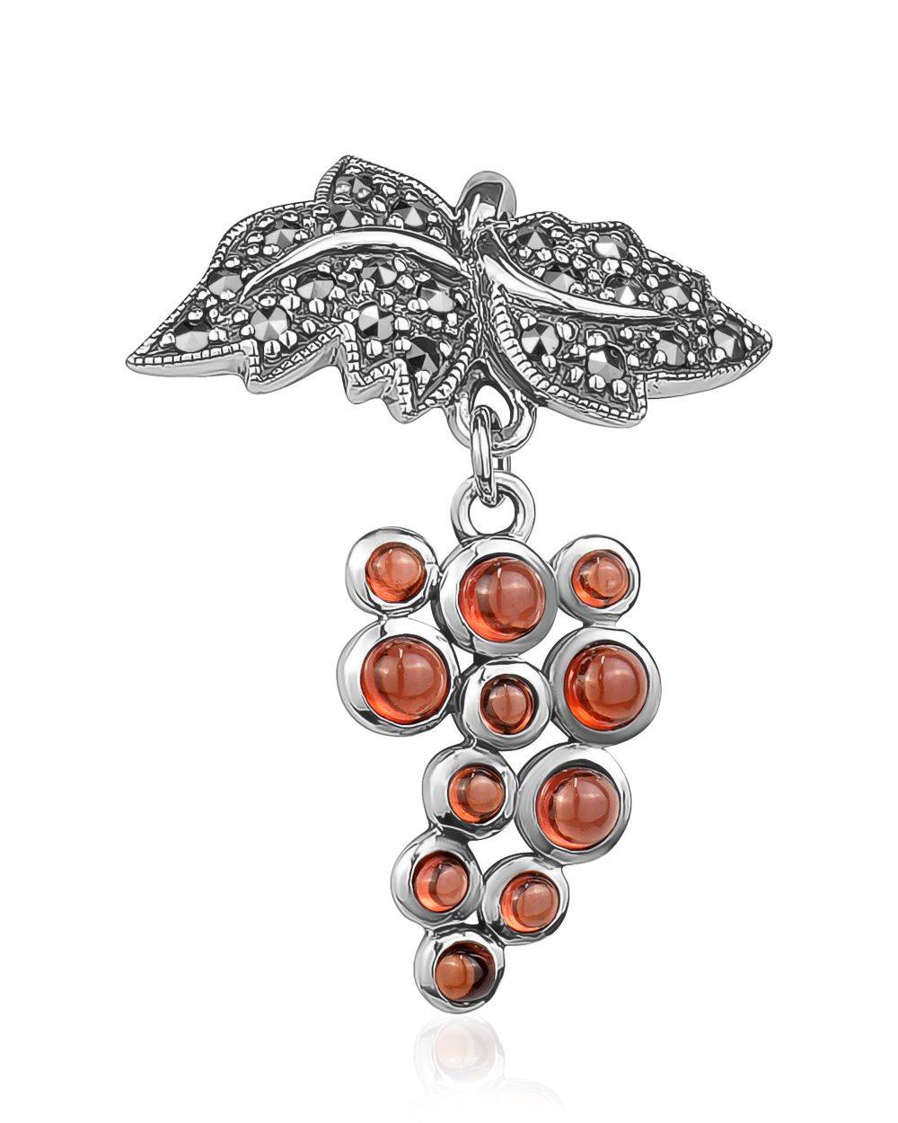 Oxidized silver brooch with cabochon garnet and prong-set marcasite.