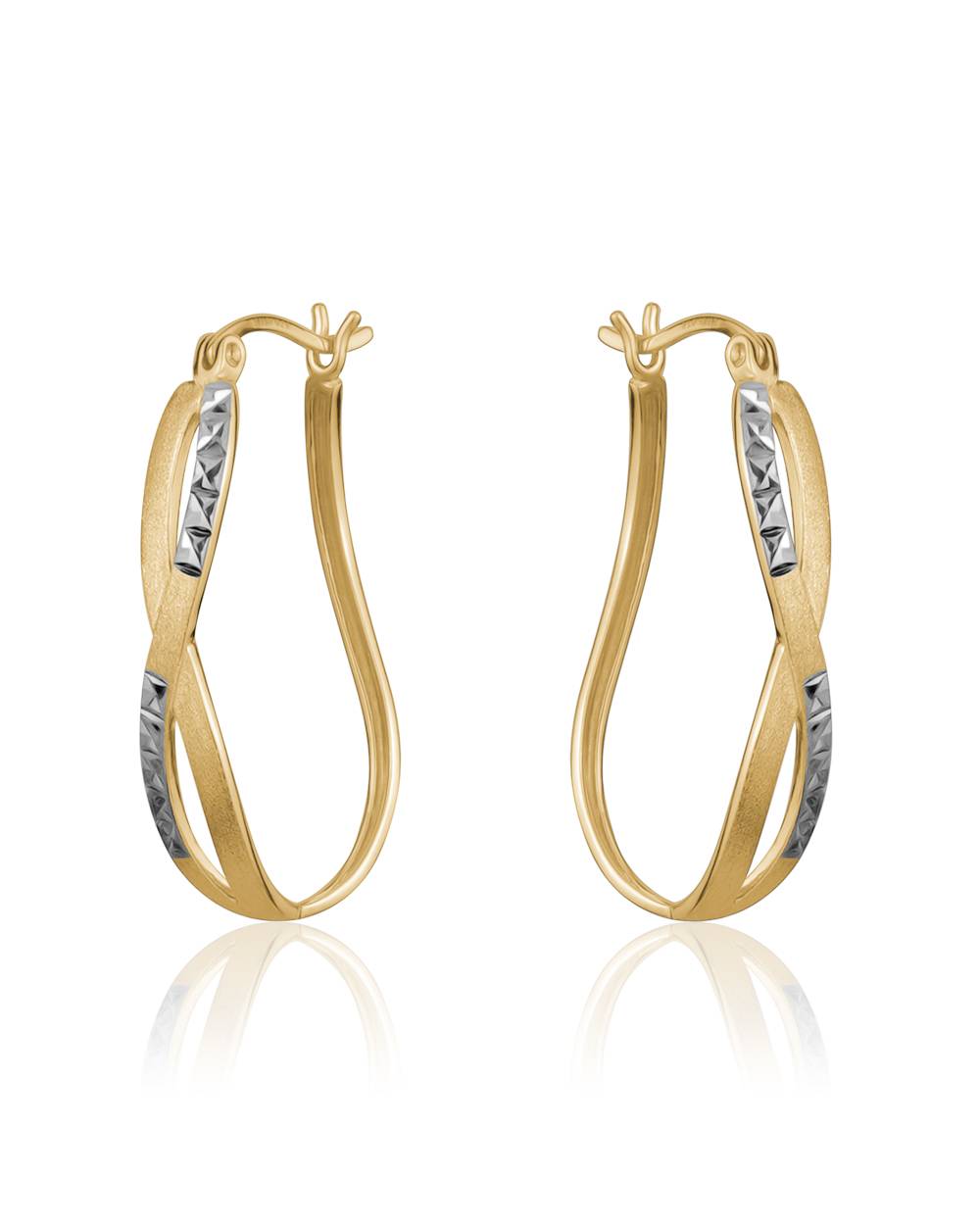 Gold plated silver infinity hoops with diamond cut design.