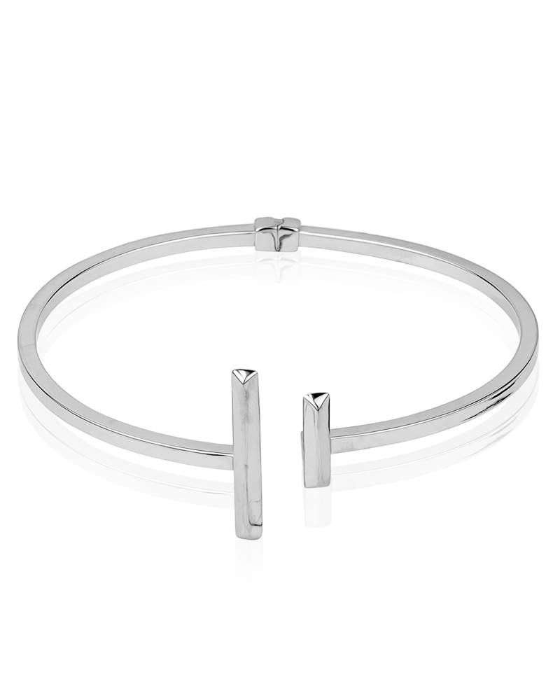 Sterling Silver Rhodium Plated T Bangle with a hinge easy to wear