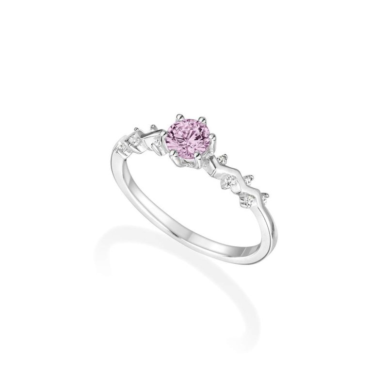 Pink and white tinted Cubic Zirconia prong set on 925 sterling silver with rhodium plating to prevent tarnishing.  Stays beautiful clean and shiny.  Timeless design, waterproof, and sweatproof won't tarnish.
