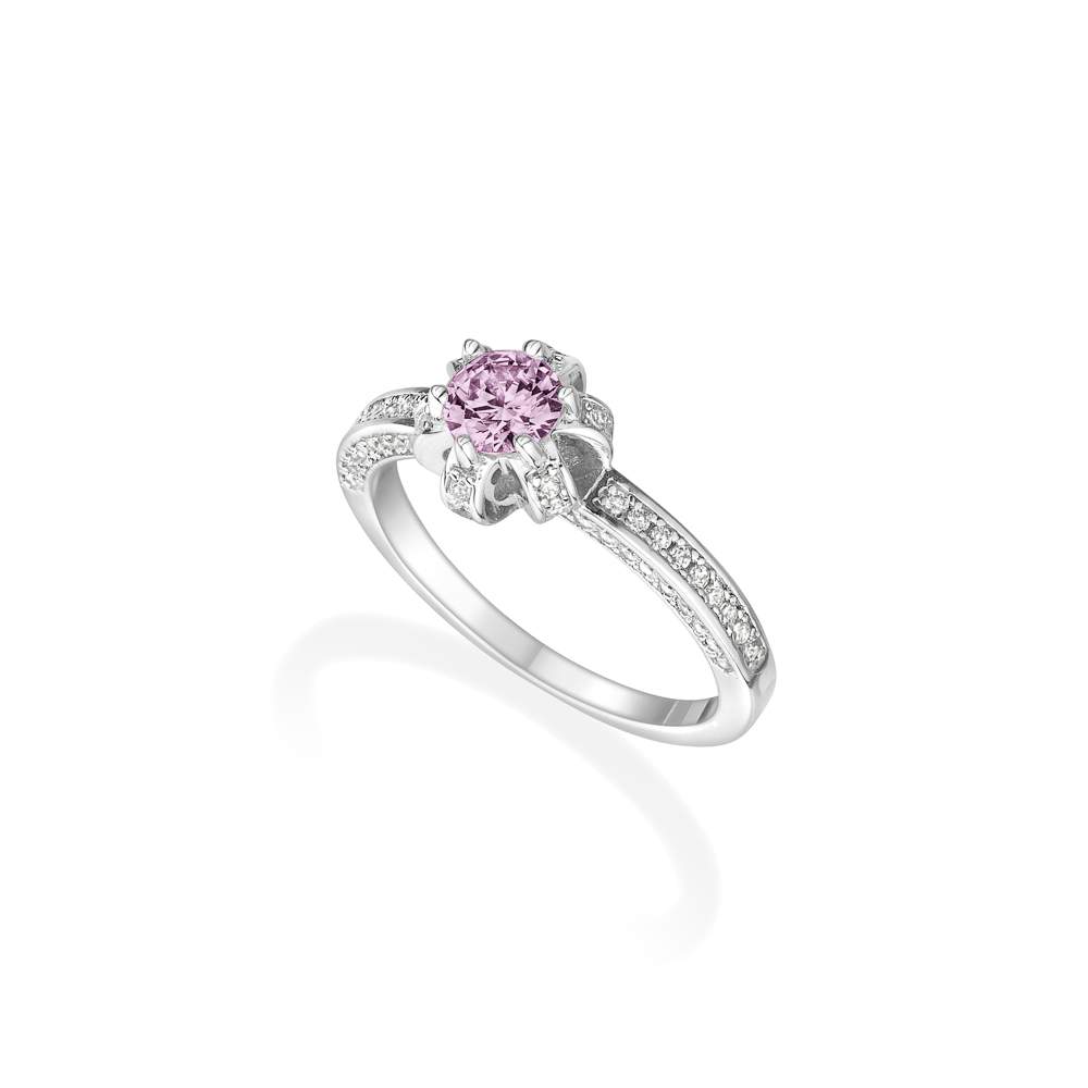 Featuring a brilliant pink cubic zirconia in a secure six prong setting on 925 sterling silver with rhodium plating to prevent any tarnishing. Stays beautiful clean and shiny. Timeless design, waterproof, sweatproof and won't tarnish. The band is adorned with sparkling white cubic zirconias in a micro-pavé setting, adding elegance and shimmer from every angle.
