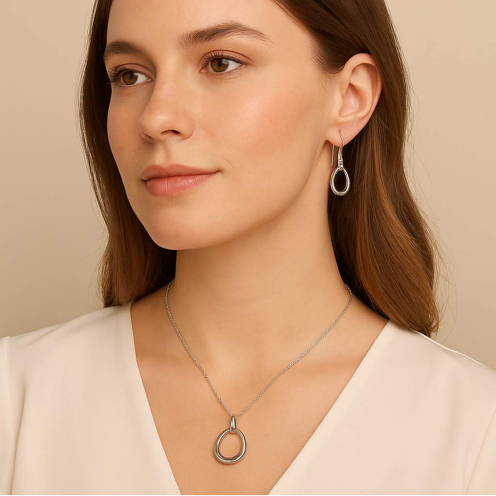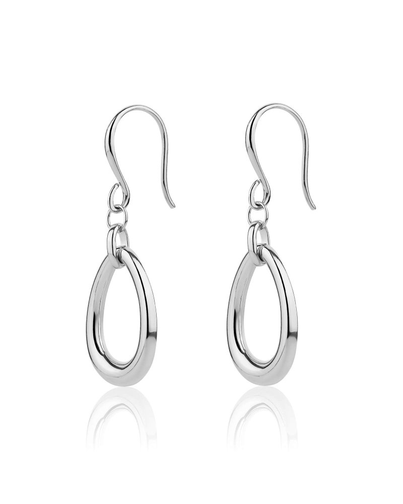 These refined earrings are crafted in 925 sterling silver, featuring a sleek open oval drop that moves gracefully with every step. Designed with a polished finish, they capture the light beautifully while maintaining a timeless simplicity.