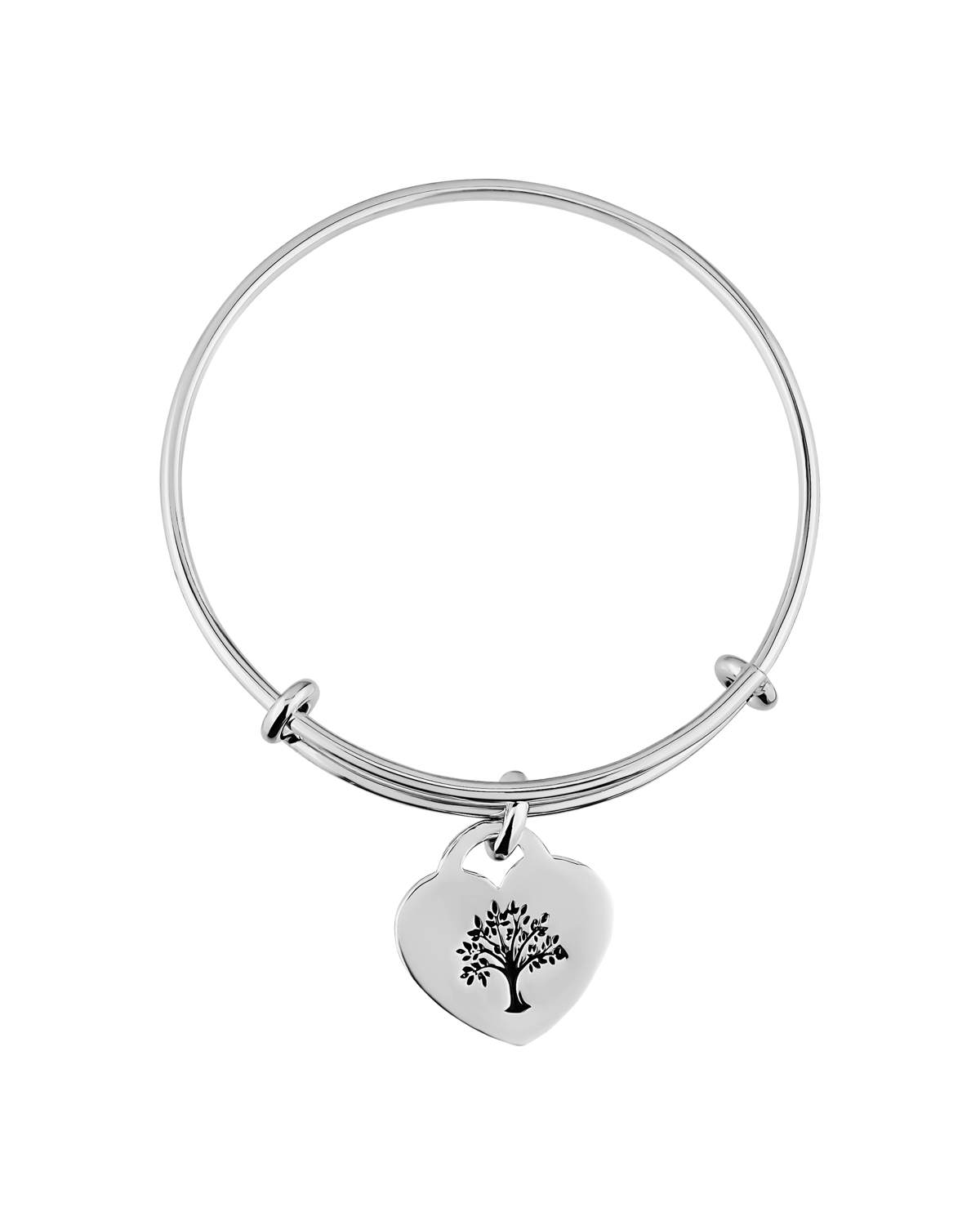 Heart Bangle with Tree of Life Charm – Sterling Silver Adjustable Bracelet