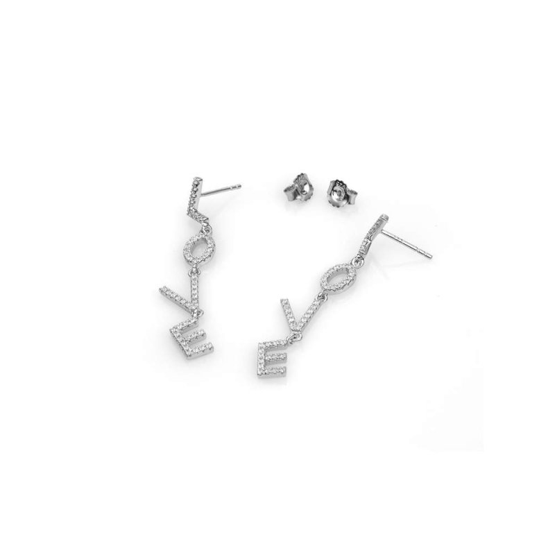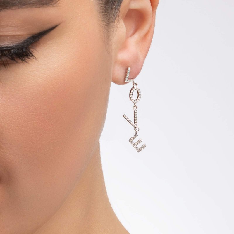 Celebrate love with every movement. The LOVE Pave Letter Drop Earrings are crafted in rhodium-plated sterling silver, offering a brilliant, tarnish-resistant shine. Each letter is delicately pavé-set with radiant cubic zirconia, forming a playful, elegant silhouette that sways beautifully as you move.
