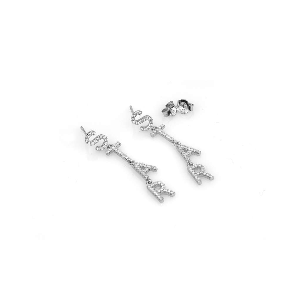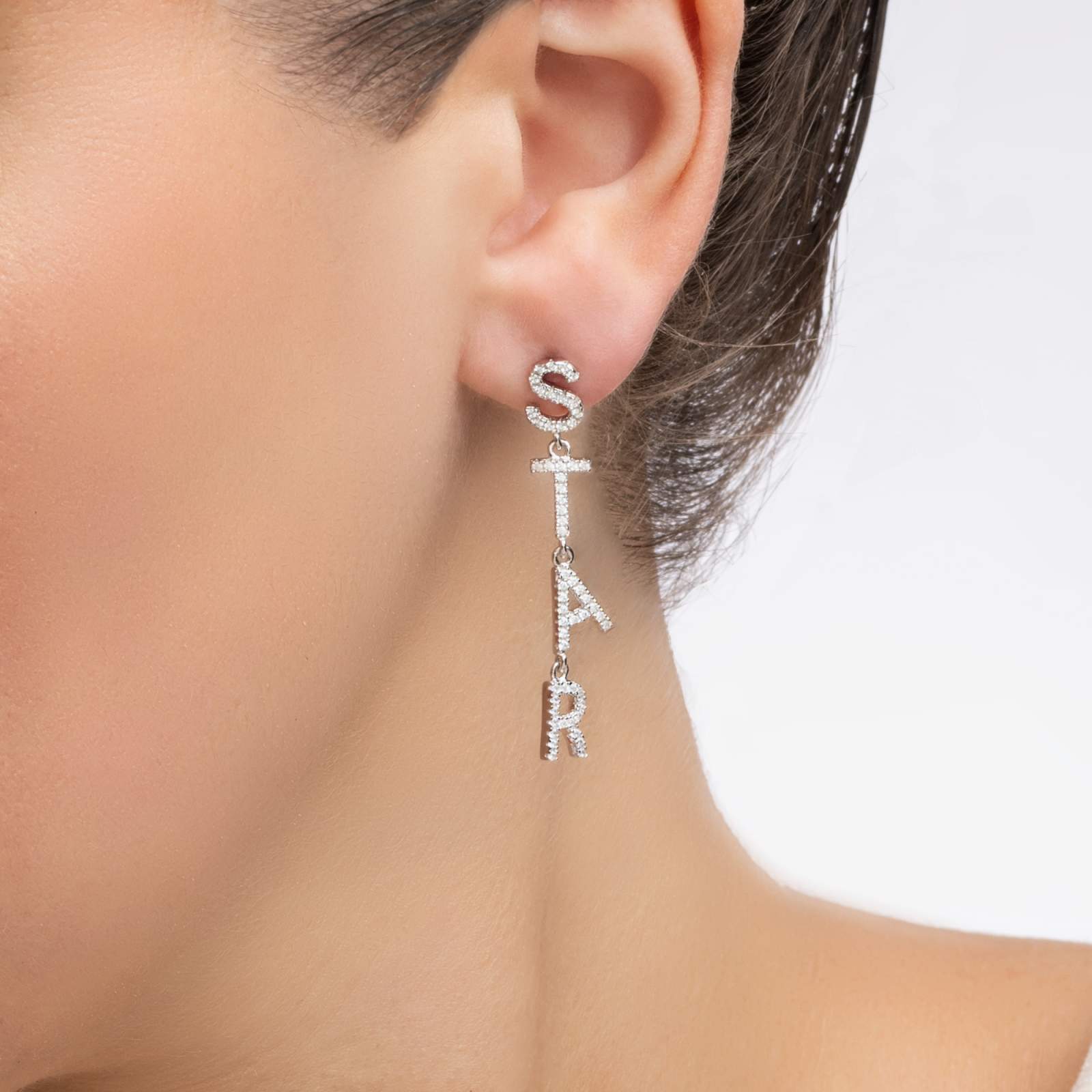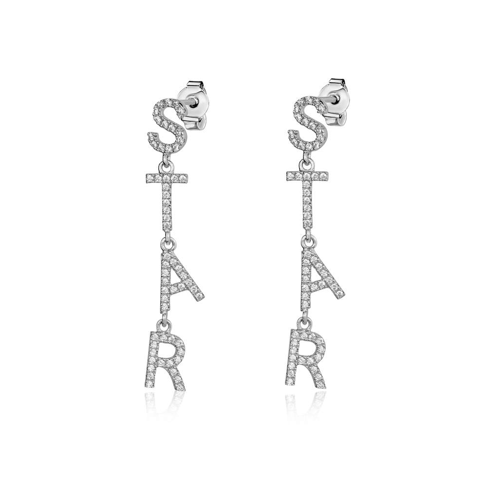 Shine bright with the STAR Pave Letter Drop Earrings, crafted in rhodium-plated sterling silver for a luminous and tarnish-resistant finish. Each letter is pavé-set with brilliant cubic zirconia, creating a playful, articulated silhouette that sparkles beautifully with movement.
