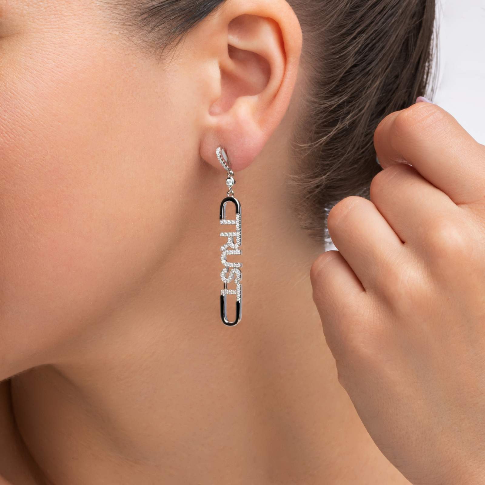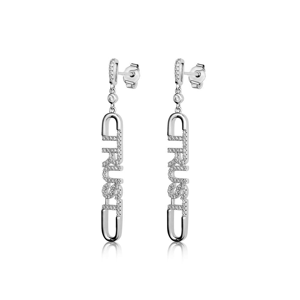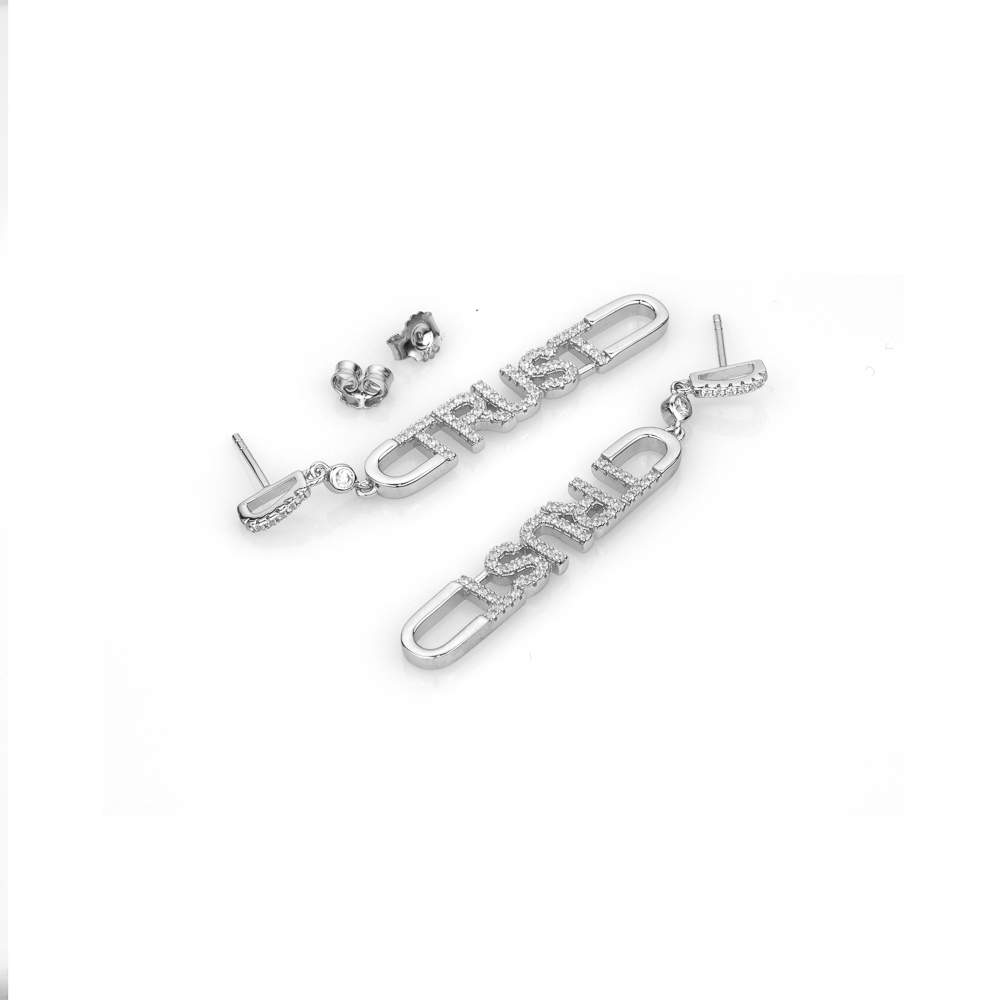 Carry confidence and grace with the TRUST Pave Letter Drop Earrings. Crafted in rhodium-plated sterling silver, each letter is delicately pavé-set with brilliant cubic zirconia, creating a slim vertical silhouette that moves with fluid sparkle.