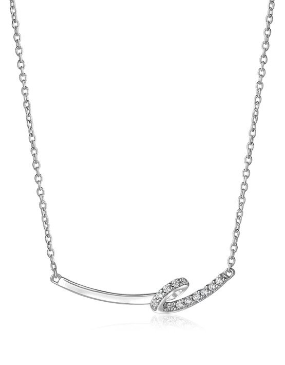 White Cubic Zirconia, Ribbon-shaped, Necklace, Rhodium Plated Silver with chain adjustable 16" - 18"