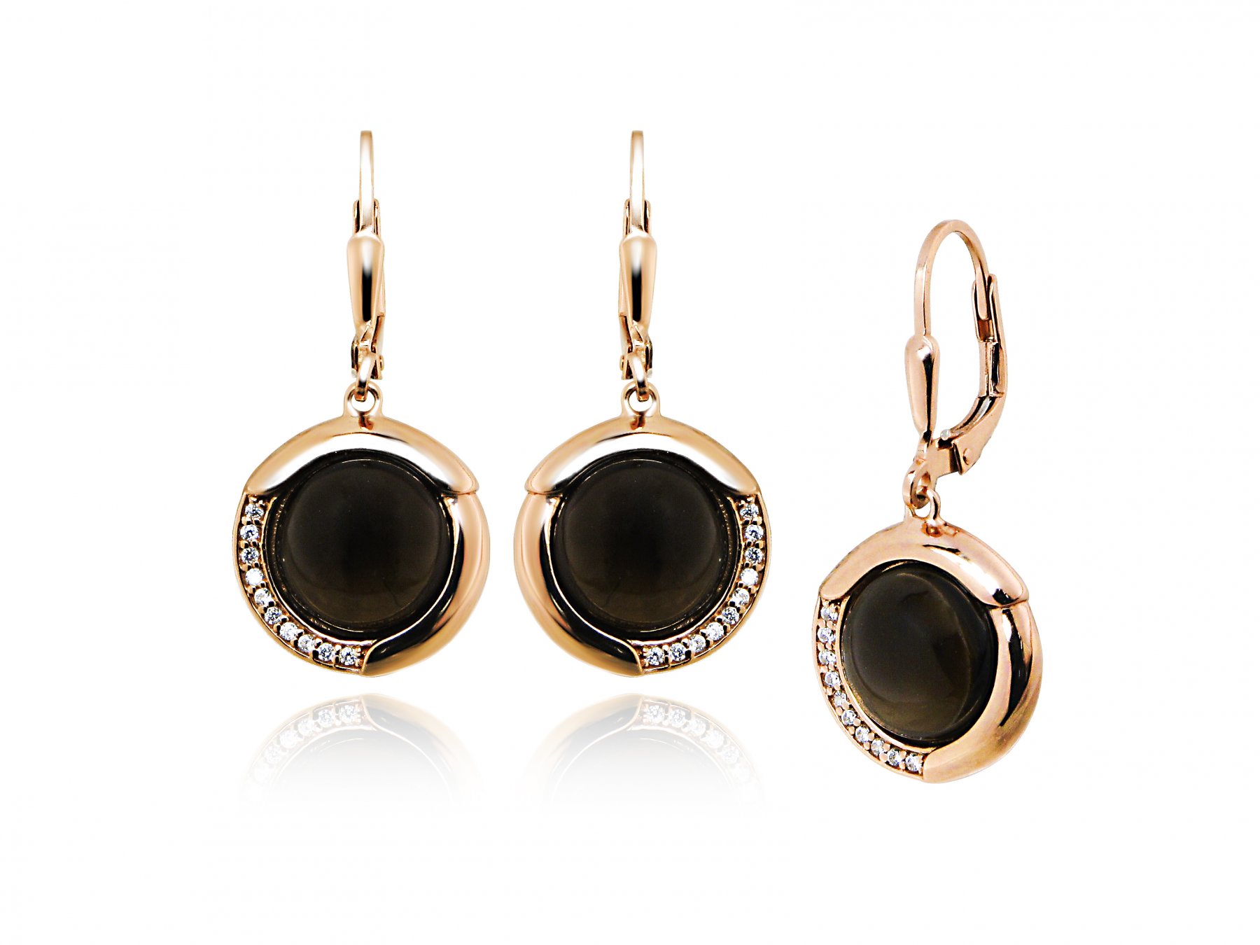 Rose gold plated silver with smokey quartz cabochon and cubic zirconia.