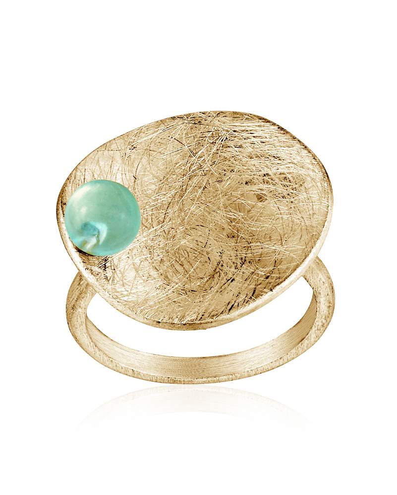 Gold plated silver brushed matte ring with dyed glass beads.