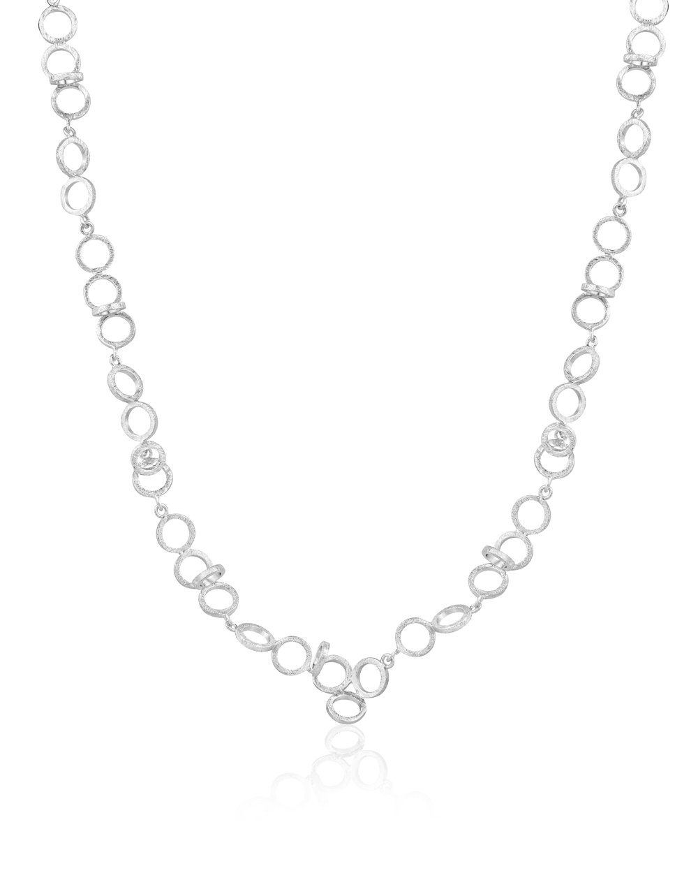 Rhodium plated silver brushed matte necklace.